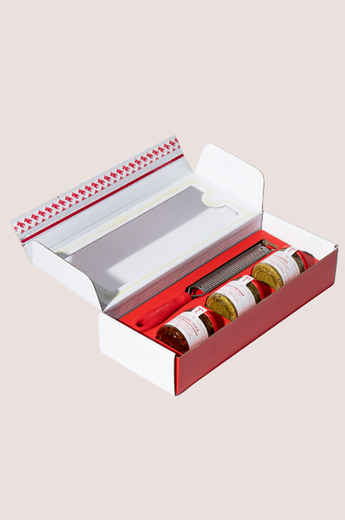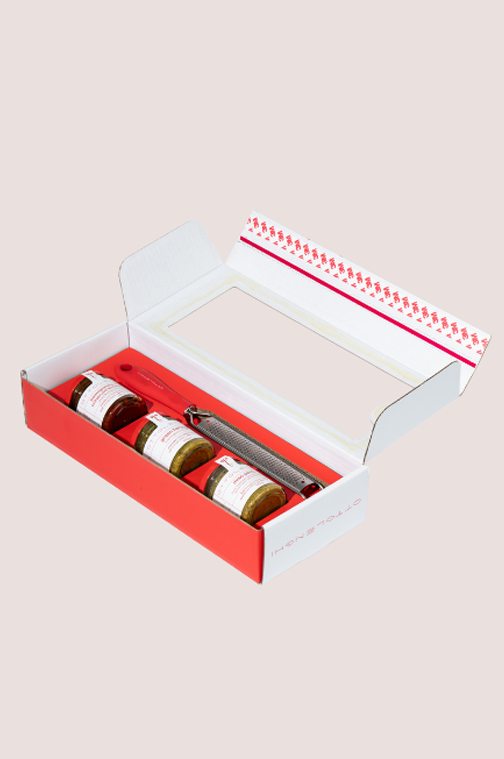 Nextpack developed a bespoke box that supports the book while showcasing each element – the fine grater and Ottolenghi’s trio of condiments – with space to breathe. Made from recycled materials, it balances strength, sustainability, and presentation, reflecting Ottolenghi’s refined yet approachable brand.